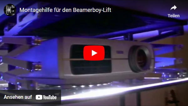 Als Erstes solltest du die benötigten Maße für deinen Beamerlift bestimmen (also Plattengröße und Deckenfreiraum). Als generell geeignete Werte kannst du folgende Maße nehmen. Für die Plattenbreite solltest du rund 20cm breiter als dein Beamer berechnen. In der Länge solltest du 15cm länger als dein Beamer einplanen. Der benötigte Platz zwischen Betondecke und abgehangener Decke ergibt sich aus der Höhe deines Beamers + 2cm Sicherheitsabstand + 2 x Plattenstärke. Für mittelgroße/mittelschwere Beamer (z.B. Epson EH-LS11000W) sind Plattenstärken für die Boden- / Deckenplatten von 15-18mm meist ausreichend. Für kleine Flächen und Beamer sind auch 12mm geeignet. Ich empfehle Sperrholzplatten oder Multiplexplatten. Als Minimalhöhe (falls dein Beamer dazwischen passt) kannst du bei der Variante M mit ca.10cm, L mit ca.12cm und XL mit ca. 14cm plus 2x Plattenstärke rechnen. Weitere nützliche Informationen zu den Varianten und Einbaumöglichkeiten findest du im Video .